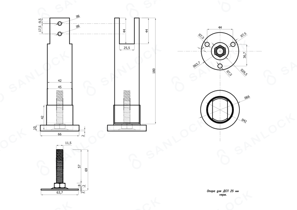 Приобретается отдельно в зависимости от заполнения.Опорные ножки данной модели применяются в сантехнических перегородках (туалетных кабинках, душевых кабинках, писсуарных перегородках), а также модульных офисных перегородках, кабинках для переодевания, при изготовлении корпусной мебели из ДСП/ЛДСП толщиной 25 мм. Опоры просты в установке и уходе, имеют универсальный дизайн. Возможна регулировка высоты.