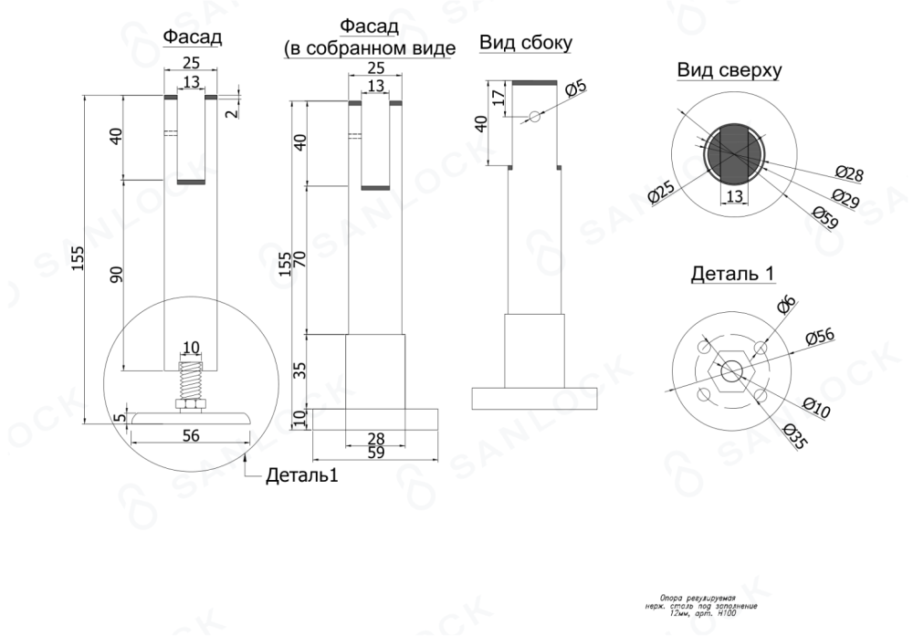 Приобретается отдельно в зависимости от заполнения.Опорные ножки данной модели применяются в сантехнических перегородках (туалетных кабинках, душевых кабинках, писсуарных перегородках), а также модульных офисных перегородках, кабинках для переодевания, при изготовлении корпусной мебели из ДСП/ЛДСП толщиной 12 мм. Опоры просты в установке и уходе, имеют универсальный дизайн. Возможна регулировка высоты.