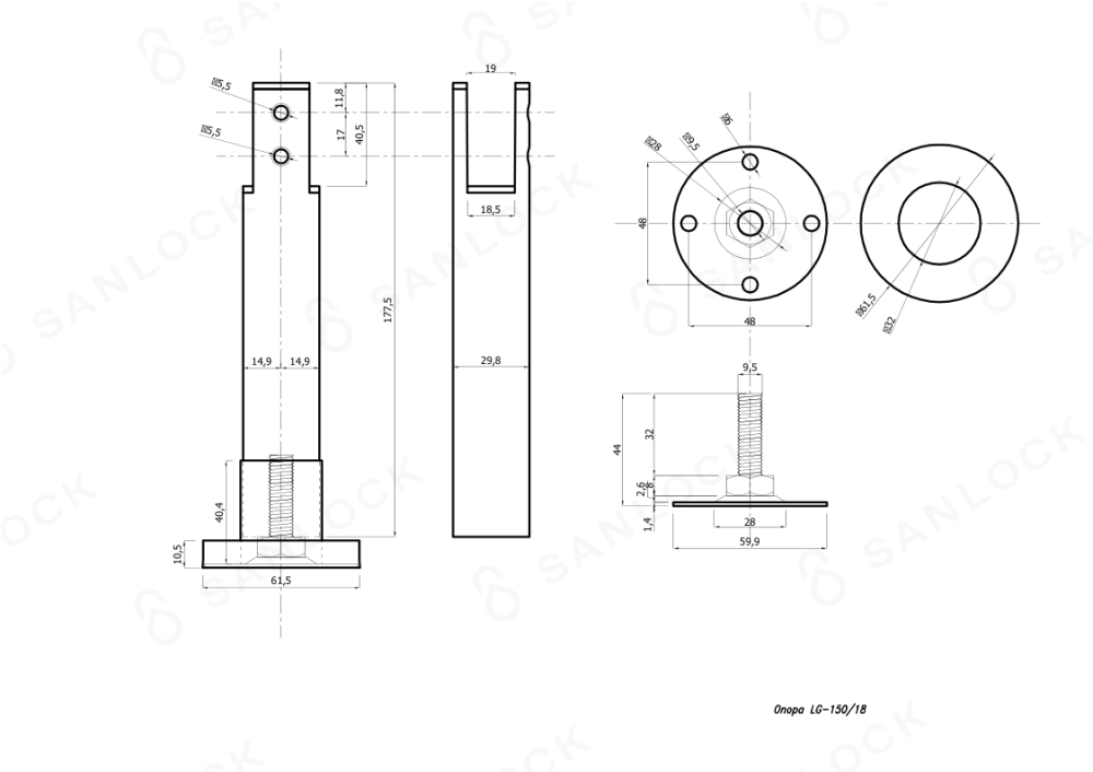Приобретается отдельно в зависимости от заполнения.Опорные ножки данной модели применяются в сантехнических перегородках (туалетных кабинках, душевых кабинках, писсуарных перегородках), а также модульных офисных перегородках, кабинках для переодевания, при изготовлении корпусной мебели из ДСП/ЛДСП толщиной 18 мм. Опоры просты в установке и уходе, имеют универсальный дизайн. Возможна регулировка высоты.